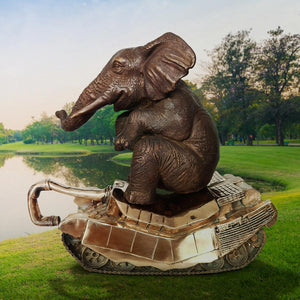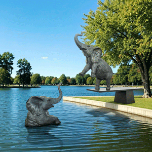 Description This captivating bronze sculpture capturing the magnificence of an endangered elephant delicately perched upon a vibrant red flower. The sculpture portrays the elephant's majestic presence with lifelike precision, from its massive tusks to the wrinkles adorning its weathered skin. Balanced gracefully on the crimson petals, the elephant serves as a poignant reminder of the beauty and vulnerability of these remarkable creatures. The bold contrast between the red flower and the bronze sculpture highlights the urgency of conservation efforts, urging viewers to cherish and protect Earth's endangered species.