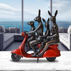 The family of Rabbitwoman and Rabbitwoman are very close. They do everything together. They go shopping, go on holiday, go out to dinner, EVERYTHING together. They prefer it this way, even if things get a little squishy. They always find space because being together is more important than anything else. They have a soft spot for vespas because it’s an excuse to hold on tightly to one another.