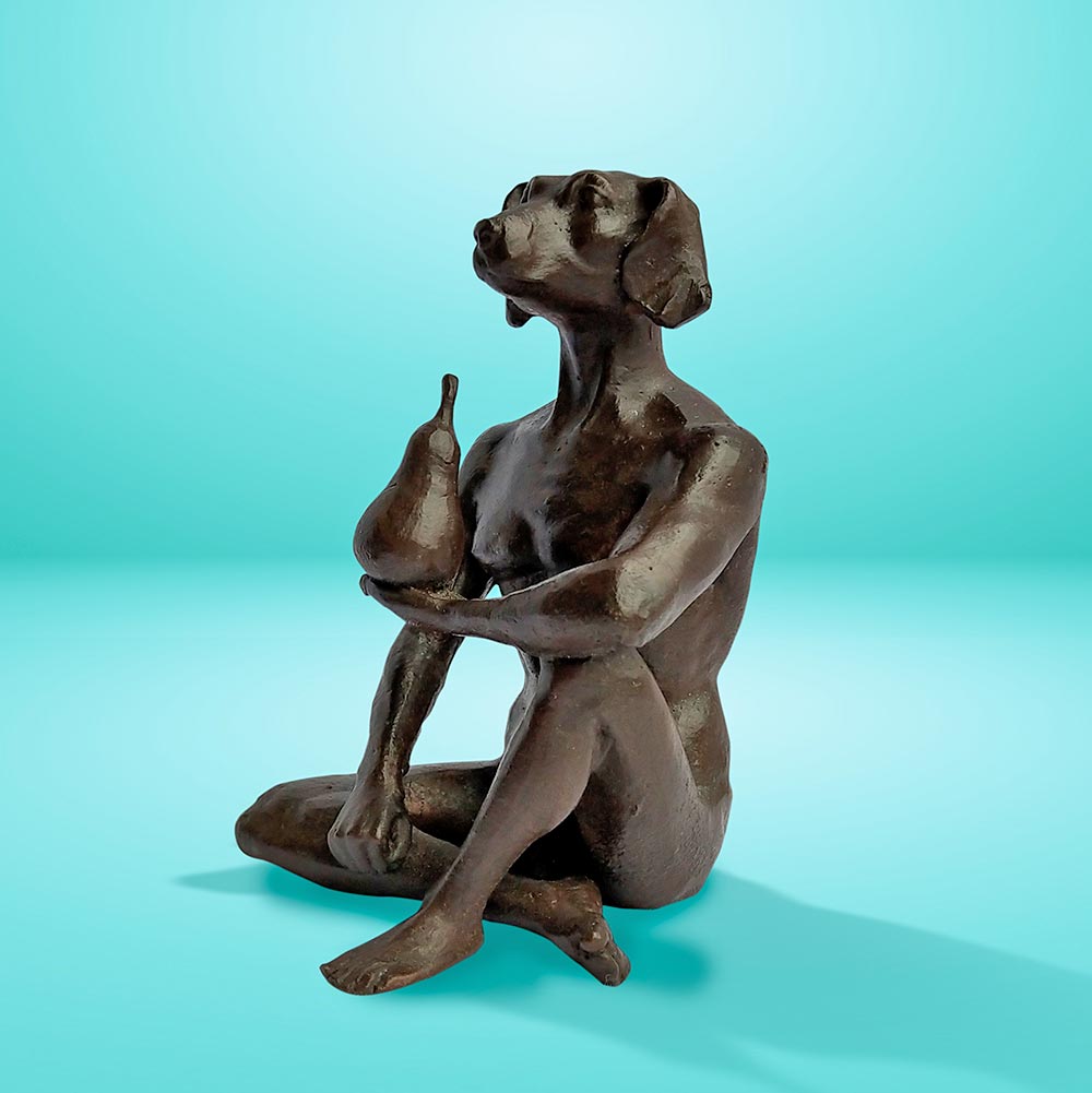 Dogman sits in his meditative way contemplating life with the pear in his hand. ‘How lucky I am to have this pear!” he thinks. Across different cultures, the pear represents fertility, wisdom, and health. And with the pear in his hand, he feels the ancient power rushing through him like a river.