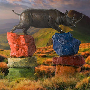 Life for rhinos is a delicate balance. Staying alive against all the odds in the harsh world poaching has caused them isn’t an easy task. However, this amazing rhino succeeds, represented by him balancing atop two stacks of beautifully coloured bronze rocks!