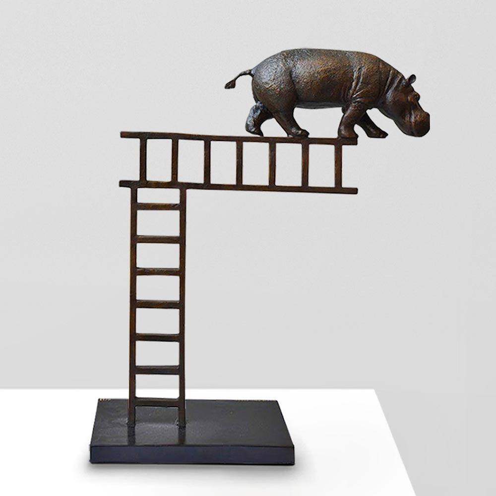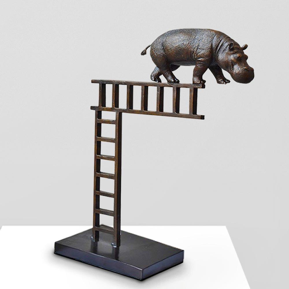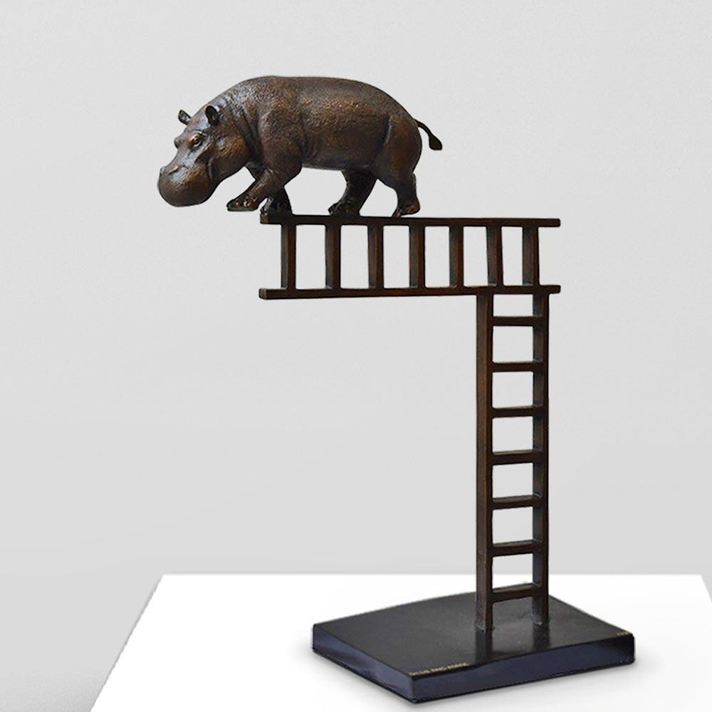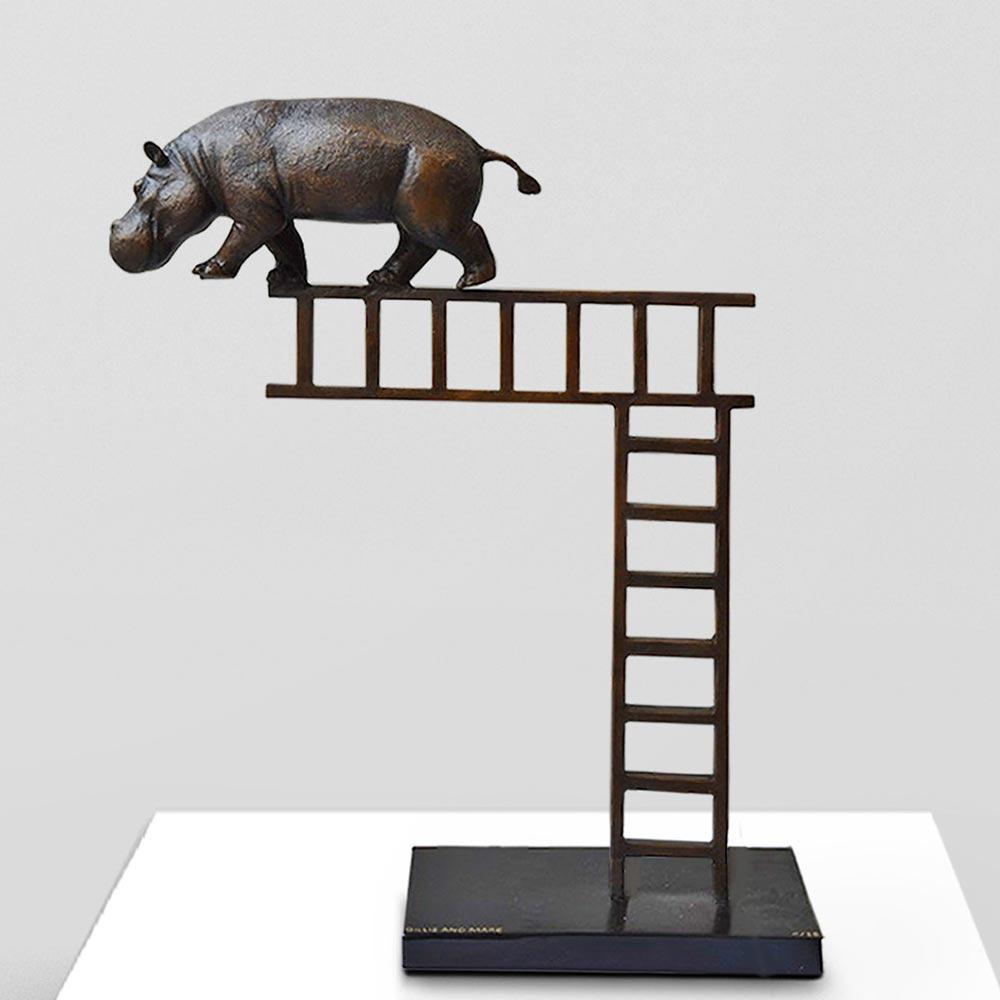 This hippo is on his way to the top! Things had hit rock bottom. His home was taken over by humans and he was constantly looking over his shoulder for fear a poacher could be hiding in the bushes. He decided enough was enough, he was no longer going to live in fear. With a little help from his friends, the hippo found a way out. Climbing high above the destruction below the hippo began his upward journey. From here it was up, up and away and he couldn’t wait to see what his new life had in store for him.