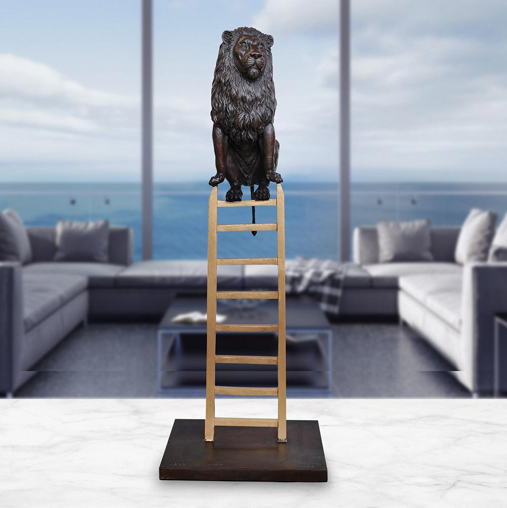 This lion is on his way to the top. Things had hit rock bottom for him, his home was being taken over by humans and he was constantly having to look over his shoulder for fear a poacher would be hiding in the bushes. He decided enough was enough, he no longer was going to live in fear. With a little help from his friends, the lion found a way out. Climbing high above the destruction below the lion began his upward journey. It was only up from here and he couldn’t wait to see what his new life had in store for him.