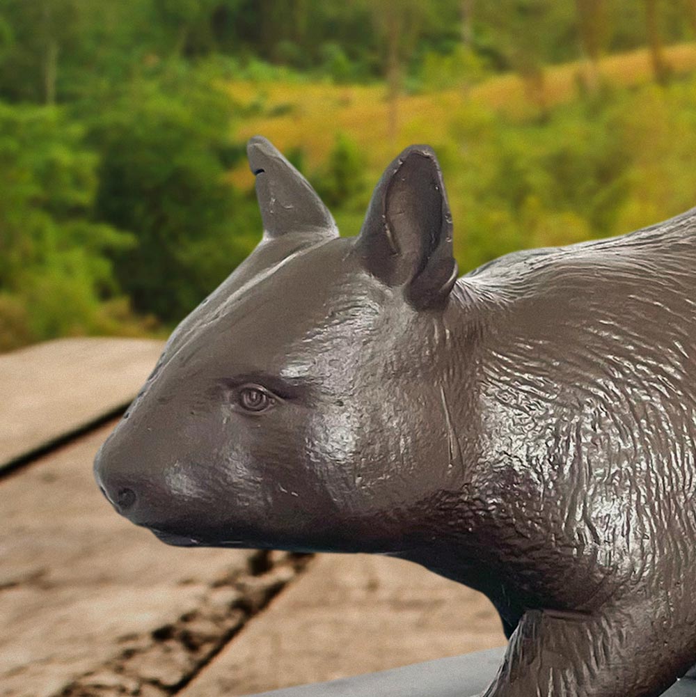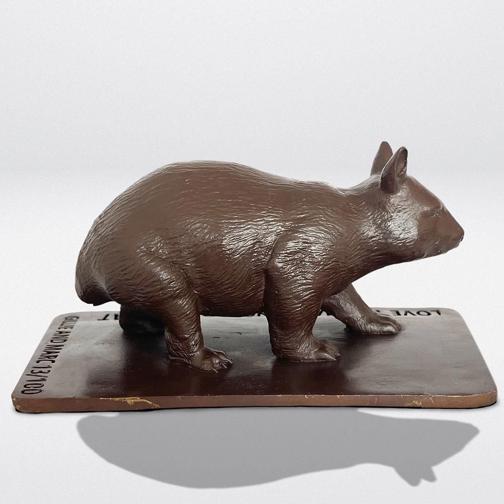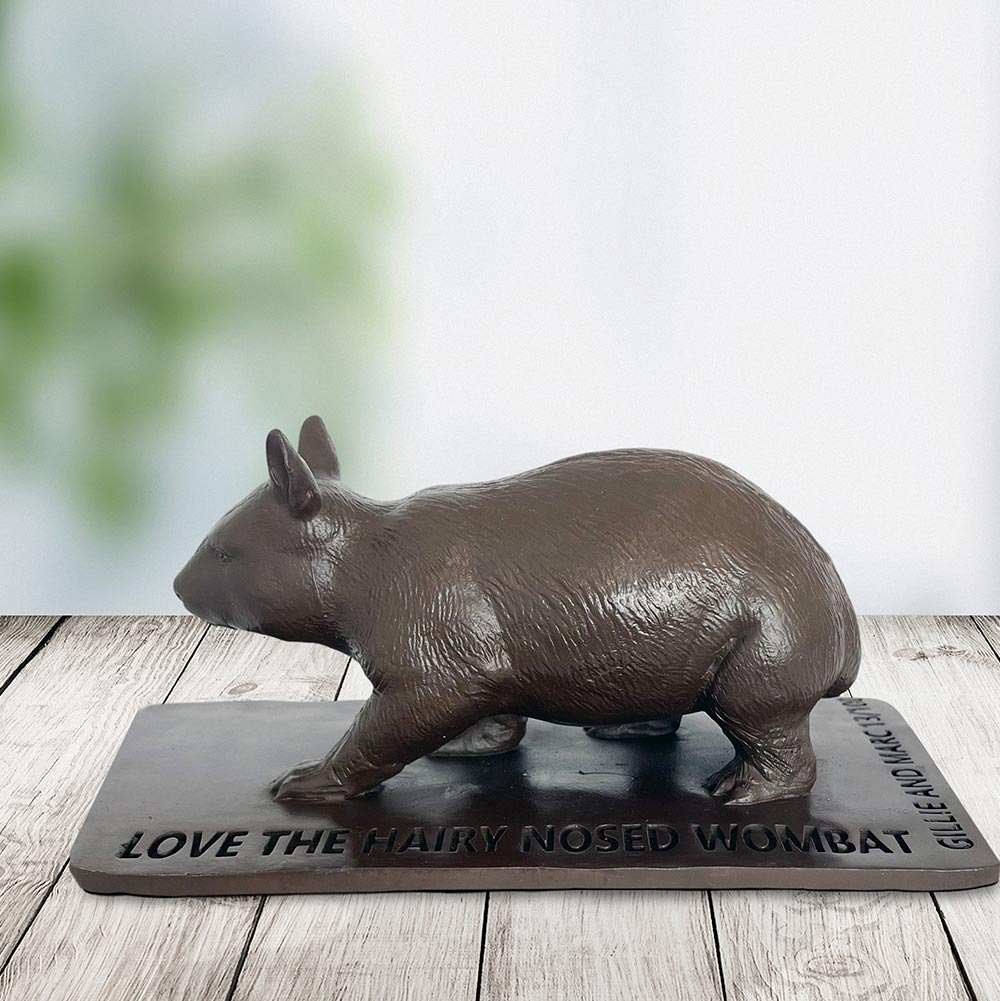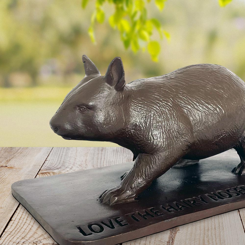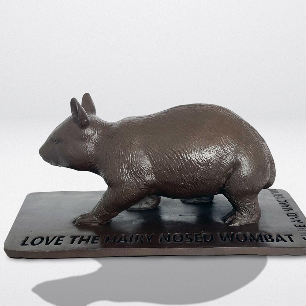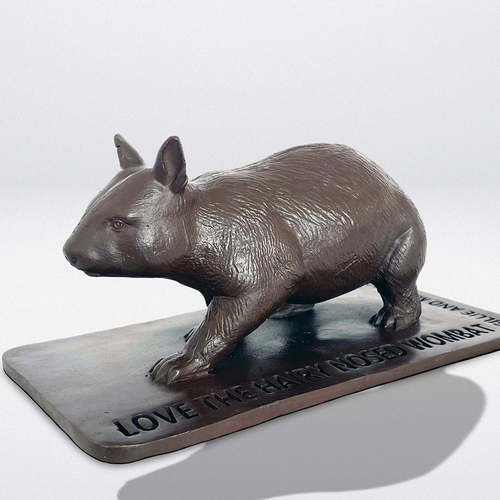 This is a mini replica of a Hairy Nosed Wombat in the monumental public sculpture Love The Last March. All the animals in the march are so very different yet they face the same threats. They march together in the hope that they will all be able to live with dignity.
