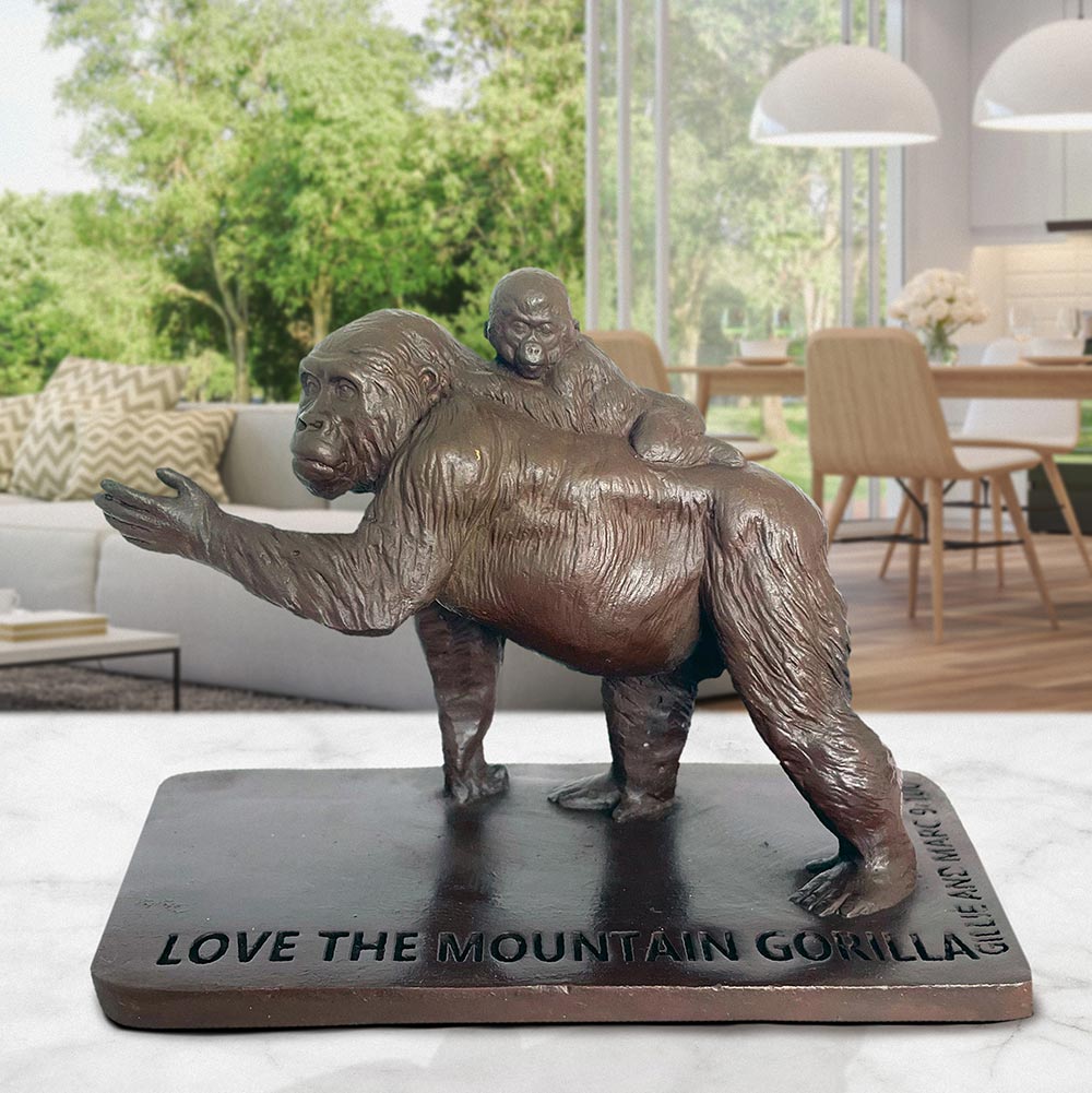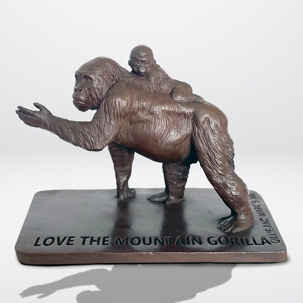 This is a mini replica of a Mountain Gorilla in the monumental public sculpture Love The Last March. All the animals in the march are so very different yet they face the same threats. They march together in the hope that they will all be able to live with dignity.