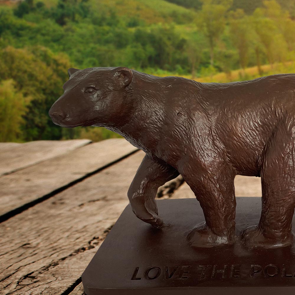 This is a mini replica of a Polar Bear in the monumental public sculpture Love The Last March. All the animals in the march are so very different yet they face the same threats. They march together in the hope that they will all be able to live with dignity.
