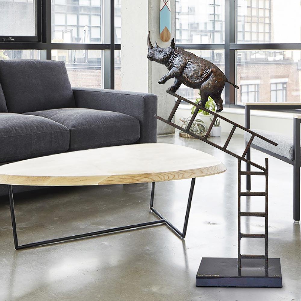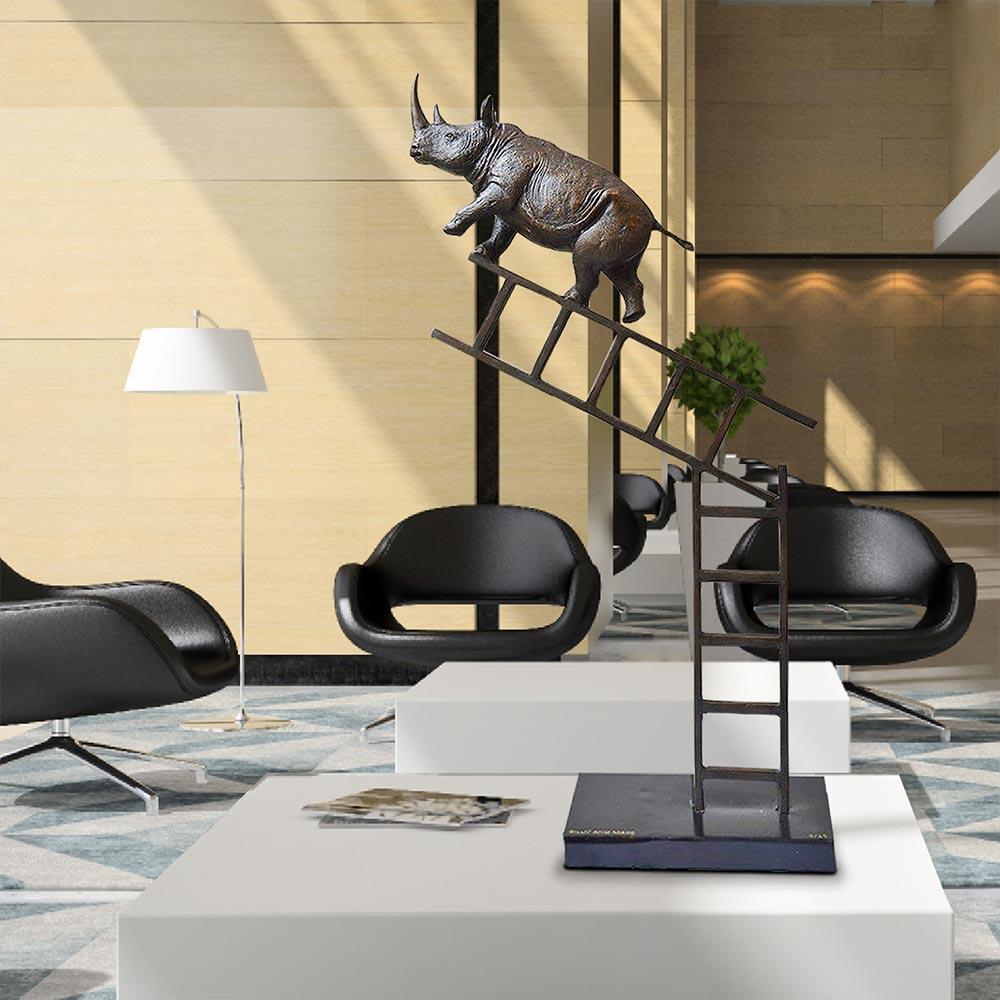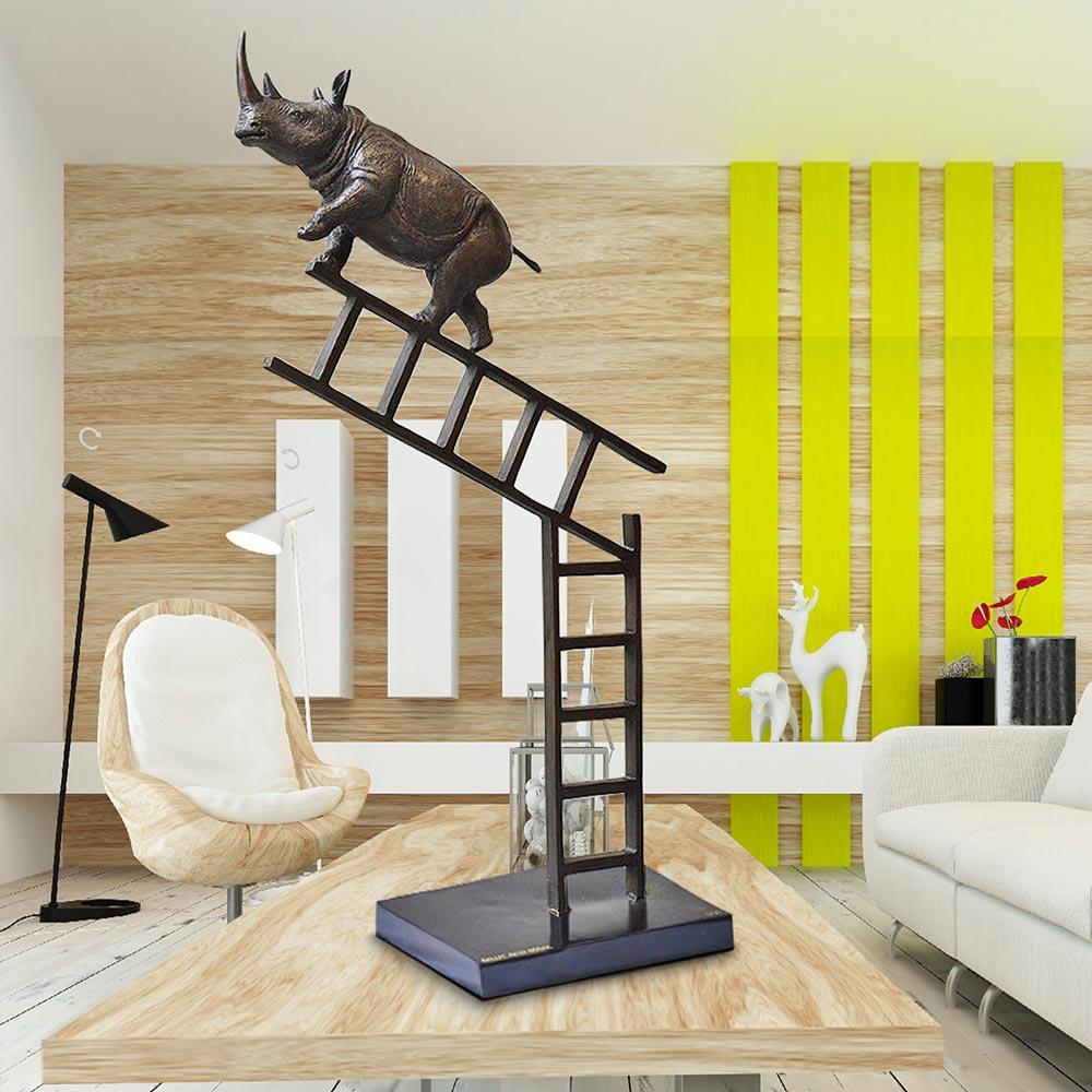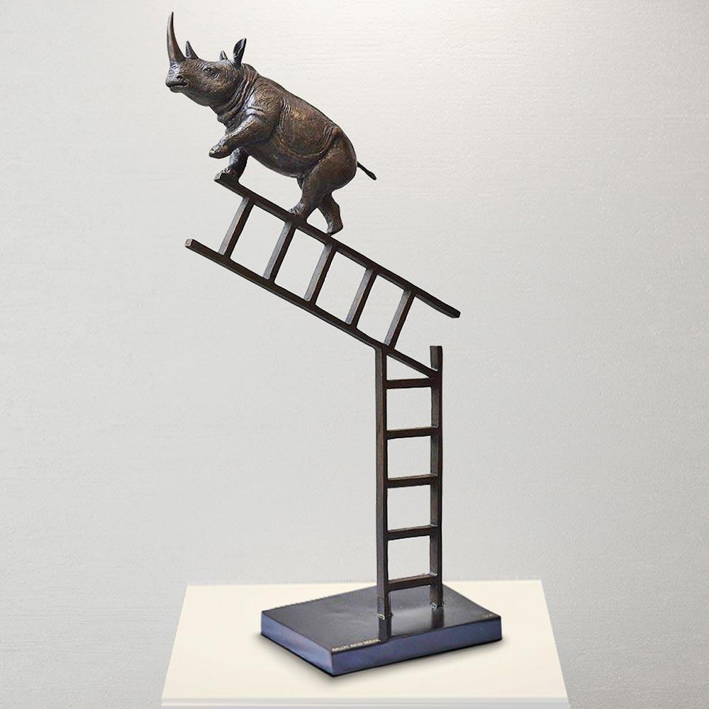 This rhino is on his way to the top! Things had hit rock bottom. His home was taken over by humans and he was constantly looking over his shoulder for fear a poacher could be hiding in the bushes, waiting to take his precious horn away. He decided enough was enough, he was no longer going to live in fear. With a little help from his friends, the rhino found a way out. Climbing high above the destruction below the rhino began his upward journey. From here it was up, up and away and he couldn’t wait to see what his new life had in store for him.