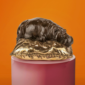 This hippo has given up her usual muddy snoozing spot for something with a little more class; a golden pillow. She knows how precious she is. She knows she's worth her weight in gold. Now she just needs the rest of the world onboard. Looking radiant as she sleeps she knows she can dazzle.