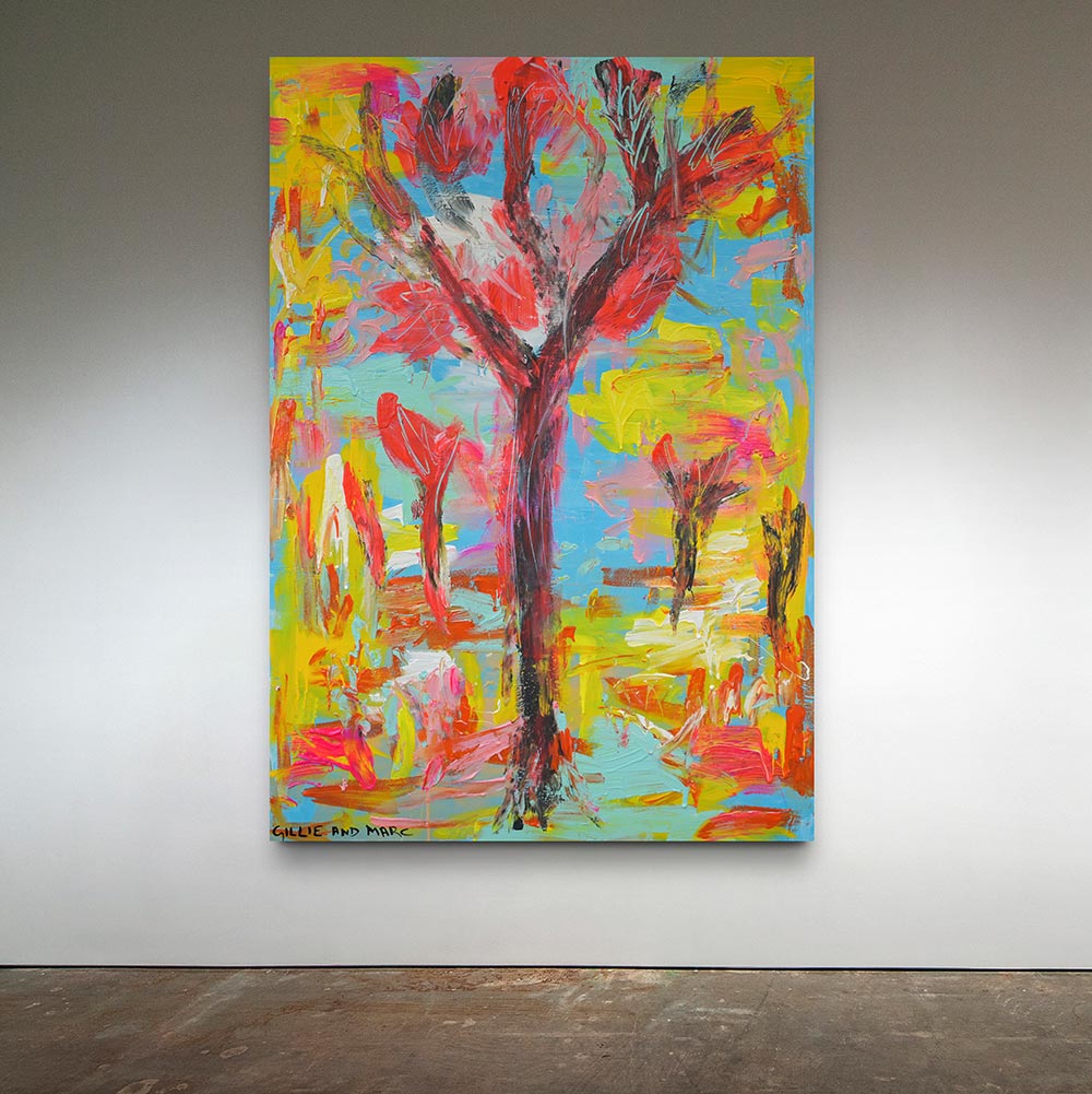 In a series of contemporary abstract style paintings, Gillie and Marc are bringing the vibrancy of the forest to canvas and the joy of nature into peoples homes. Beautiful as they are, these paintings are a little bit special. For every painting sold, the artists have pledged to plant 200 trees in real life, creating forests across the planet and healing the world. Everyone who buys a painting or print will become a ‘Future Forest Planter’ and will be provided with a certificate with the amount of trees they have planted.