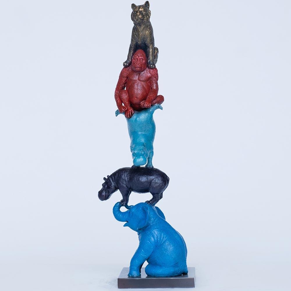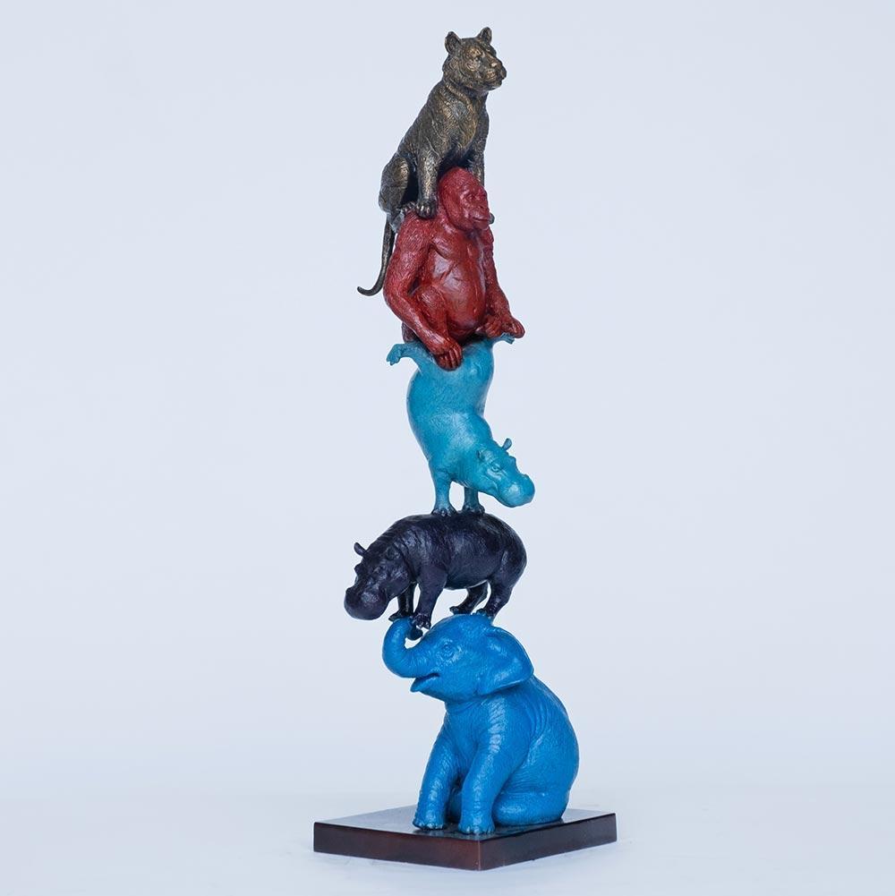 Everything is connected, from the tallest tree to the smallest ant. That’s why when one creature is threatened, they all are, including us humans! When the prey of one animal becomes scarce, the predator starves. Alternatively, if the predator is wiped out, the prey can become too plentiful wiping out plant life. This stack of endangered animals looks at the delicate balance, showing how they all hold each other up. But we’ve done it with extra fun! As you look at the hand standing hippo, we hope you smile, bringing all the animals into your heart and helping to make sure the tower never falls.