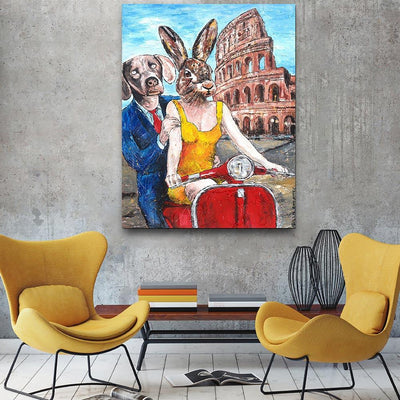 The famous saying tells us that all roads lead to Rome, but for Rabbitwoman and Dogman this was really true! They loved their Roman holidays, pretending to be Audrey Hepburn and Gregory Peck as they rode around town on a Vespa, falling in love. They would take any road leading to Rome whenever they could.